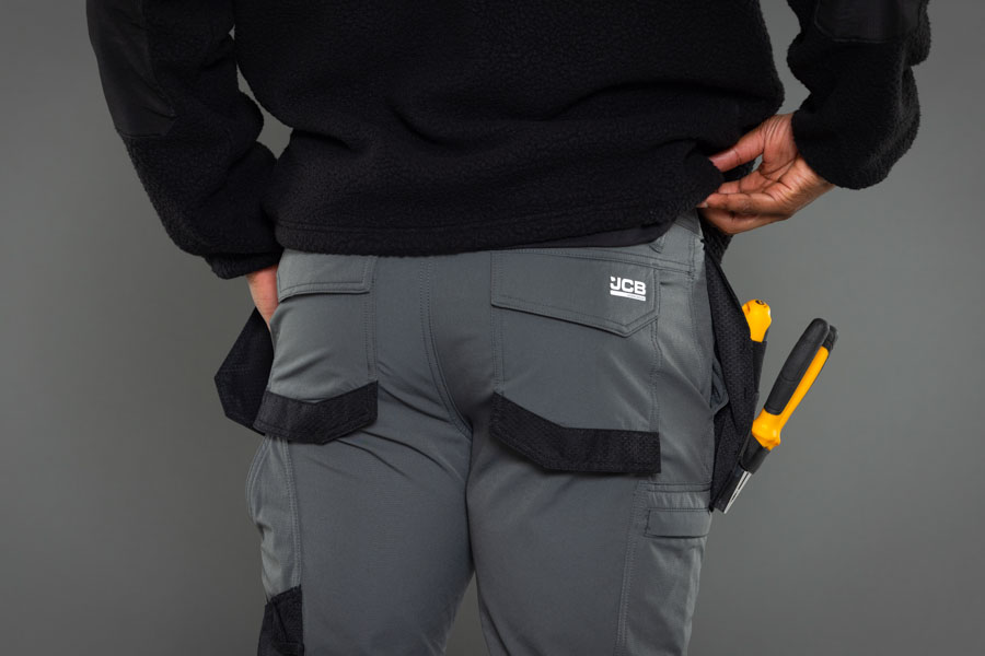 Jcb Workwear Mens 4-way Stretch Holster Pocket Trousers Dark Shadow