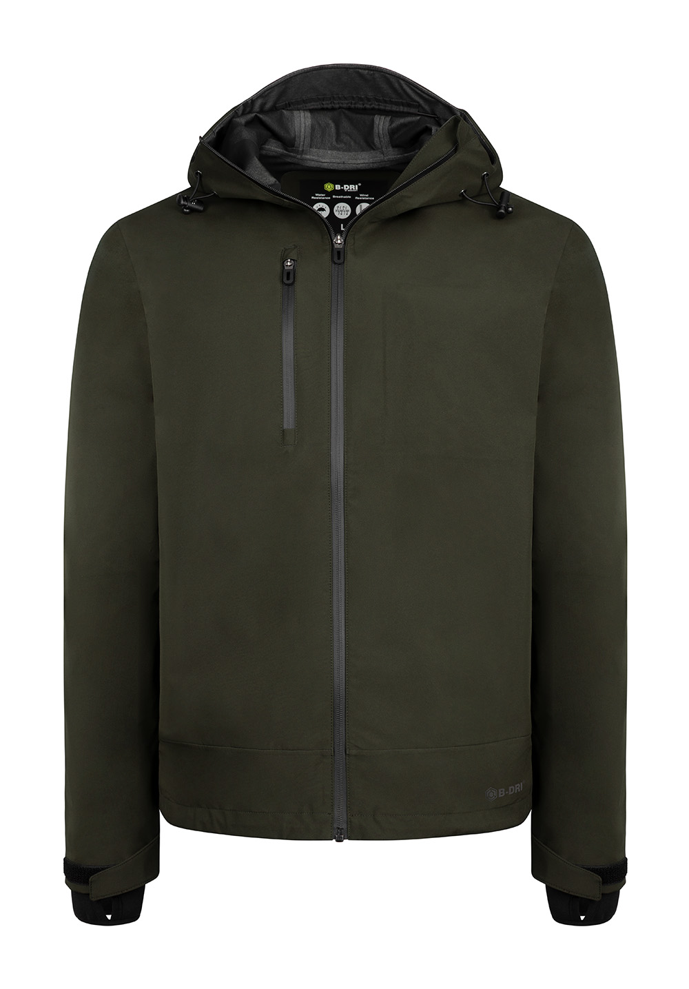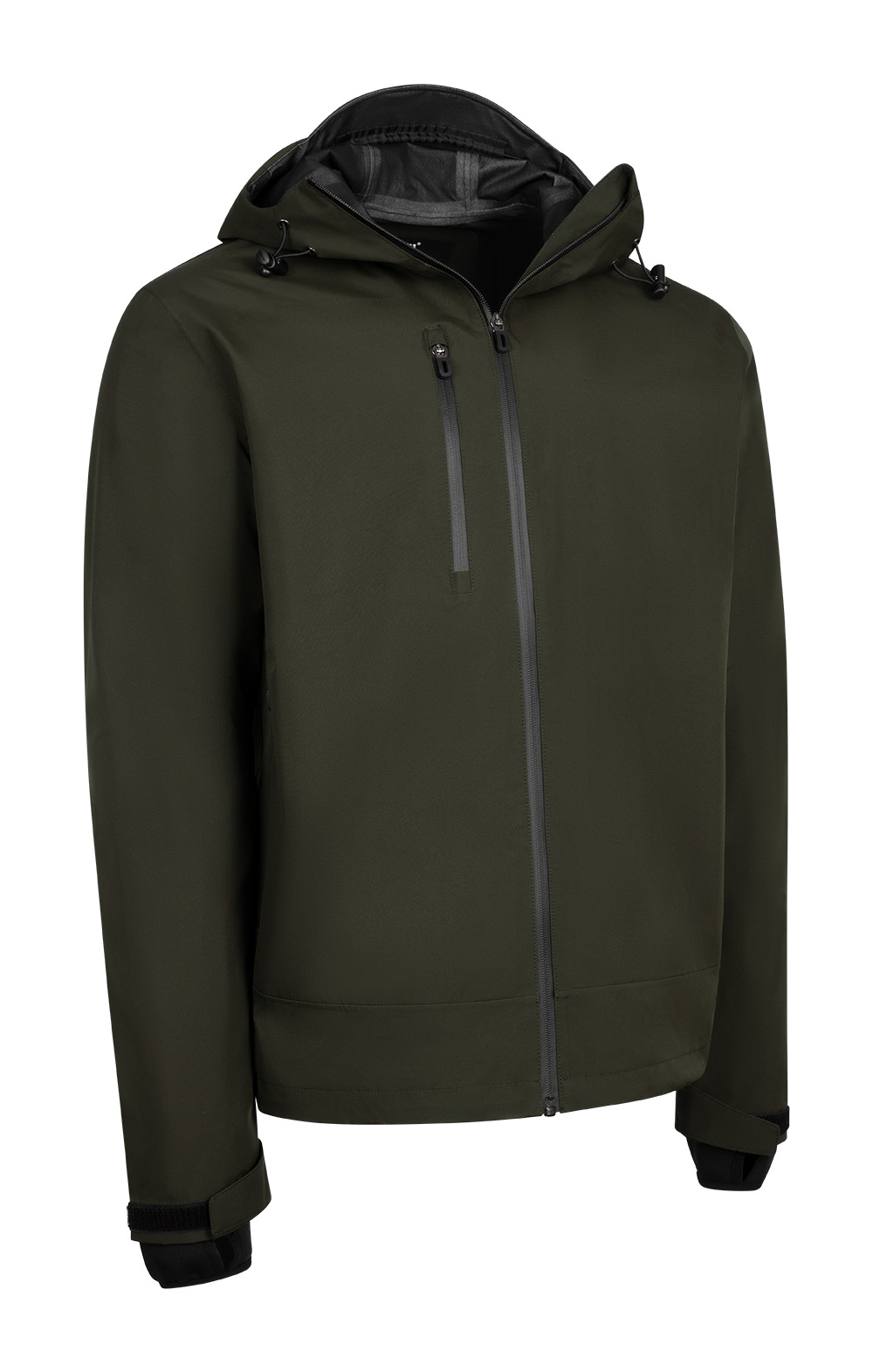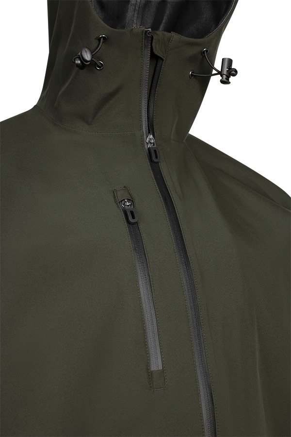Right breast pocket with laminated water resistant zip
