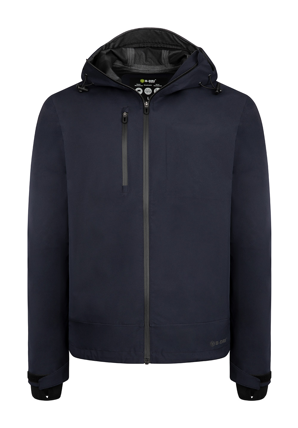 Right breast pocket with laminated water resistant zip